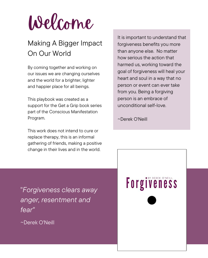 We gather the first 3 Monday’s a month, during European term time, at 7.30pm GMT via zoom. NB: Zoom gatherings will not be recorded. Our vision is to promote wellness, build community and expand through higher consciousness teachings. The practical wisdom we will access is part of the Get a Grip series by Derek O’Neill. These pocket-sized books explore themes that we all experience at some stage in life. Themes such as Anger, Weight, Forgiveness, Love/Divorce, Suicide and Gratitude, to name but a few and is supported by the Creacon Manifestation Programme.